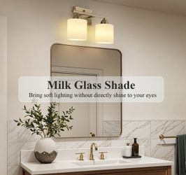 Brass Modern Vanity Light 2-Light Milk Glass Shade E26 Brushed Brass Bathroom$25Dallas, TX