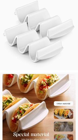 DOWAN Porcelain Taco Holder, 9.75" Large Taco Stand with Handle, Sturdy and Stable, Oven & Microwave & Dishwasher Safe, Safe without Sharp Edge, Taco $14Houston, TX