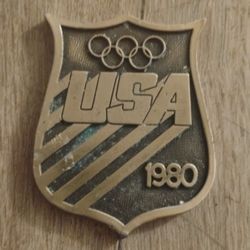 USA Moscow 1980 XXII Olympiad Contributor Gold Badge Shield Olympic Souvenir$10Lewiston, ME