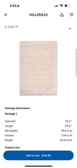 RUG IKEA VOLLERSLEV Rug, high pile, white, 5 ' 3 "x7 ' 7 "$140Miami Beach, FL