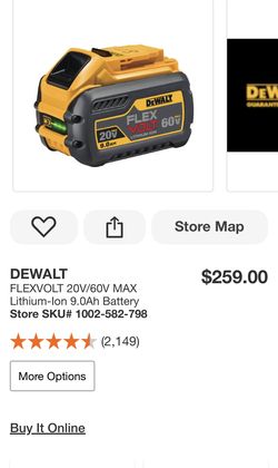 DEWALT 9.0 FLEXVOLT BATTERY $120West Hempstead, NY