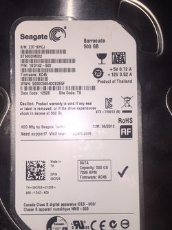 Hard Drive 3.5” SEAGATE Barracuda 500GB$30Glendale, AZ