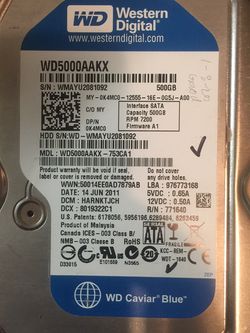 Hard Drive 3.5 “ WD 500GB$30Glendale, AZ