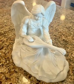 Vintage 7” Bisque Porcelain Angel Figurine Playing Lute White Matte- Religious $19Mesa, AZ