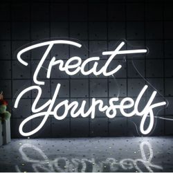 Treat Yourself Neon Signs White Led Sign for Bedroom Wall Letter Neon Lights Wedding Signs Neon Room Decor for Birthday Gift Party Home Decor Bar$20Downey, CA