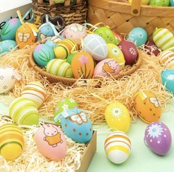 48 Pcs Easter Hanging Eggs, Multicolored Plastic Easter Egg Hanging Ornaments, Decorative Hand Painted Ball DIY Crafts Tree Ornaments for Decoration,$14Downey, CA