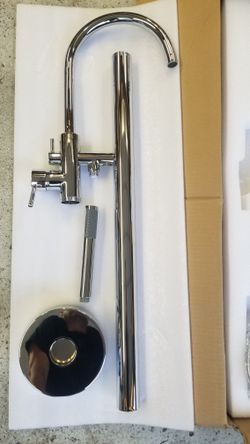 1-Handle Freestanding Floor Mount Roman Tub Faucet Bathtub Filler with Hand Shower in Chrome