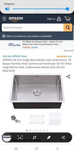 APPASO 28-inch Single Bowl Kitchen Sink Undermount, 18 Gauge Stainless Steel Commercial Handmade 10 inch Deep Large Kitchen Sink, Undermount Kitchen S$130Oak Lawn, IL