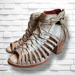 Freebird By Steven Wazee Taupe White Leather Ankle Sandals Sz 7$165Dallas, TX