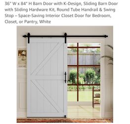 36" W x 84" H Barn Door with K-Design, Sliding Barn Door with Sliding Hardware Kit, Round Tube Handrail & Swing Stop - Space-Saving Interior Closet Do$180Ceres, CA