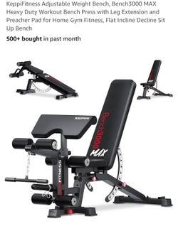 KeppiFitness Adjustable Weight Bench, Bench3000 MAX Heavy Duty Workout Bench Press with Leg Extension and Preacher Pad for Home Gym Fitness, Flat Incl$280Ceres, CA