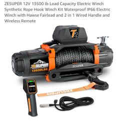 ZESUPER 12V 13500 lb Load Capacity Electric Winch Synthetic Rope Hook Winch Kit Waterproof IP66 Electric Winch with Hawse Fairlead and 2 in 1 Wired Ha$350Ceres, CA