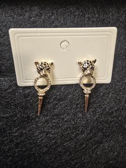 Gold-tone leopard-head Rhinestone studded drop earings$2Chula Vista, CA