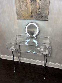 Beautiful Acrylic Clear Desk Office Desk Makeup Vanity Acrylic Silver $300Miami, FL