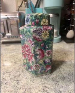 Vintage Chinese hexagonal hand painted porcelain lidded Jar Mid 20th century$30Seattle, WA