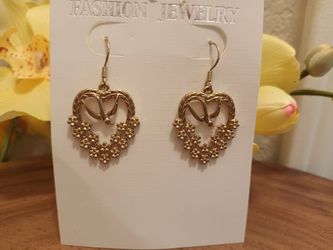 Costume Fashion Gold Tone Flowers & Swallow Heart shaped Earrings Jewelry. New Old Stock Without Tag.$6Peoria, AZ