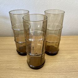 Vtg Libbey Bamboo Bash Drinking Glasses Tumblers Smokey Brown Tiki Bar Set Of 3$14Naples, FL