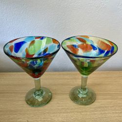2 Mexican Art Glasses Margarita Cocktail Parfait Glasses Hand Blown Multicolor$28Naples, FL