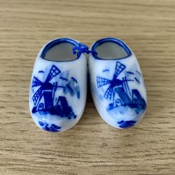 Mini Pair Dutch Shoes Delft Blue Windmills Porcelain Holland Clog Hand Painted$10Naples, FL