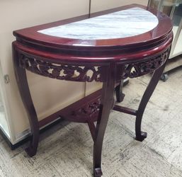 Entry Half Moon Table Marble Carved Wood Dark Cherry Finish Beautiful$150San Pedro, CA