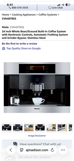 Miele CVA4070SS 24 Inch Whole Bean/Ground Built-In Coffee System$1,499Westmont, IL