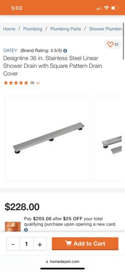 Oatey Designline 36 in. Stainless Steel Linear Shower Drain with Square Pattern Drain Cover $120Ind Head Park, IL