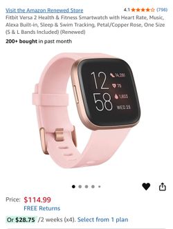 Fitbit Versa 2 Health & Fitness Smartwatch with Heart Rate, Music, Alexa Built-in, Sleep & Swim Tracking, Petal/Copper Rose, $80Kirkland, WA