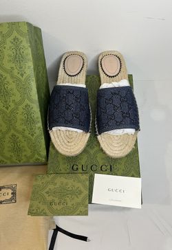 Authentic Gucci Pilar GG Denim Crystal Espadrille Sandals – Brand New $350Valley Stream, NY