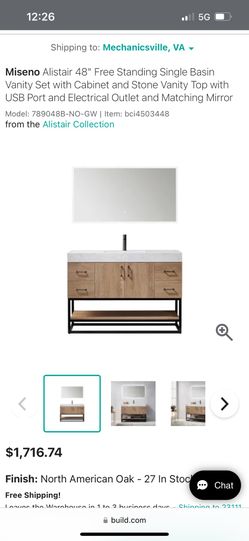 Alistair 48" Free Standing Single Basin Vanity Set with Cabinet and Stone Vanity Top with USB Port and Electrical Outlet$800Virginia Beach, VA