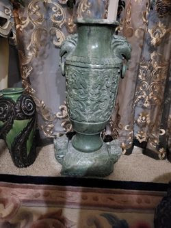 Chinese Carved Antique Or Vintage Jade Vase Set Its Very Heavy Big Size Well Carved $30,000Las Vegas, NV