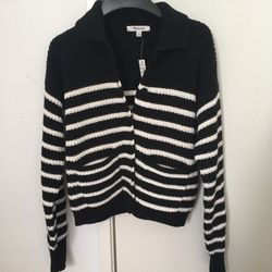 Madewell Ribbed Polo Cardigan Sweater black stripe NO966$50San Francisco, CA