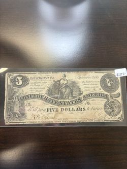 Authentic $5 Note Confederate States Of America $200San Jose, CA