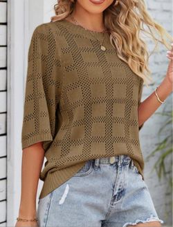 SoldDokotoo Women's Casual Short Sleeve Loose Tunic Tops Lightweight Crochet Knit Summer Sweaters Blouses$15Las Vegas, NV