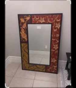This is a Pier 1 Imports hand-carved wood framed mirror featuring flowers and foliage in fall-like c$100Las Vegas, NV