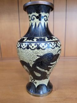 ANTIQUE 17C- 18C ? CHINESE OLD CLOISONNE ENAMEL. Brass? VASE DRAGONS $80Plainfield, IL