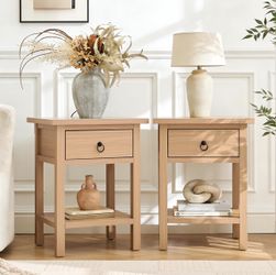 BRAND NEW Nightstands Set of 2, with Open Storage Shelf, Caramel Oak/ Dimensions look on the second photo$100Costa Mesa, CA