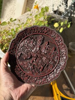 Antique 18c Chinese Carved Lacquer Cinnabar Dish Plate With 5 Characters $100San Diego, CA