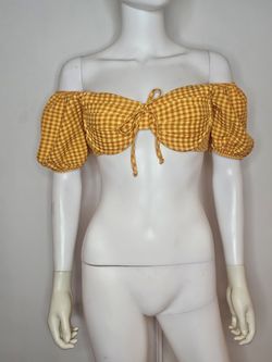 Yellow Gingham Off-Shoulder Tie-Front Crop Top Size XS$35Los Angeles, CA