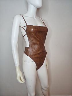 Sexy Brown Textured Strappy Faux-Leather Bodysuit Size XS$45Los Angeles, CA