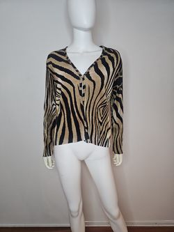 VTG Plissé Animal-Print V-Neck Button Cardigan in Beige & Black Size S$65Los Angeles, CA