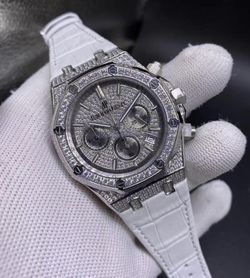 SoldWhite Leather Strap Ap With Moissanite Stones In Bezel $1,850West Hills, CA
