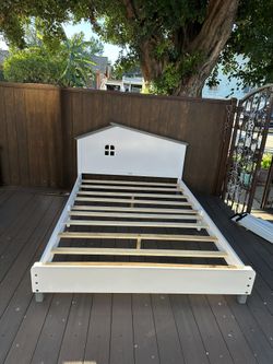 Lapday Full Size Wood Platform Bed Frame with with House-Shaped Headboard,for Boys,Girls,Toddler (White+Gray) And Lamp$90Windsor Hills, CA