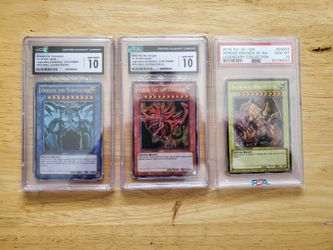 Yu - Gi - Oh! Obelisk The Tormentor, Slifer The Sky Dragon, and The Winged Dragon Of Ra LC01 PSA/CGC GEM MT 10💎; plus BONUS! $800Chula Vista, CA