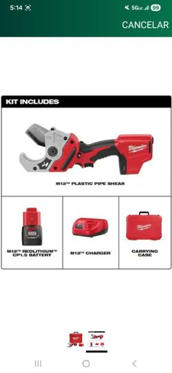 BRAND NEW MILWAUKEE 2470-21 M12 PVC PIPE SHEARS KIT$250Fontana, CA