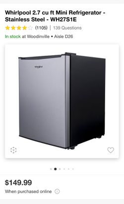 Whirlpool 2.7 cu ft Mini Refrigerator - Stainless Steel - WH27S1E$70Snohomish, WA