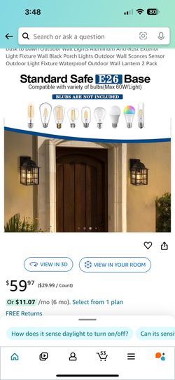 Dusk to Dawn Outdoor Wall Lights Aluminum Anti-Rust Exterior Light Fixture Wall Black Porch Lights Outdoor Wall Sconces Sensor Outdoor Light Fixture W$35Federal Way, WA