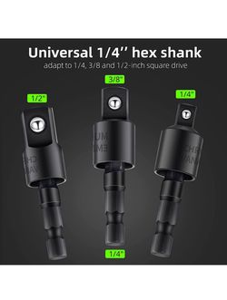 Adaptor, 3-in-1 Impact Drill Bit Extension,360° Rotatable 1/4 3/8 1/2" Impact Grade Socket Adapter Set$15Brooklyn, NY
