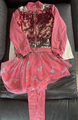 Girls Size 7 Outfit with tutu skirt, tights, unicorn long sleeve t-shirt and sequins zip up jacket.$10Cincinnati, OH