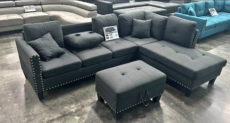 BRAND NEW 4PC SECTIONAL SOFA SET WITH OTTOMAN AND ACCENT PILOWS INCLUDED $569$569San Bernardino, CA