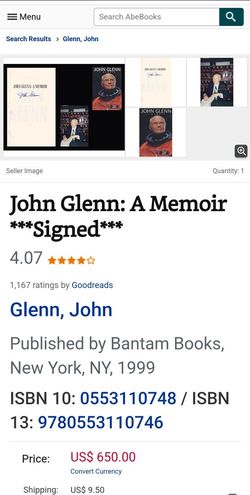 Signed 1st Ed Of The Autobiography Of Astronaut John Glenn$375Seattle, WA